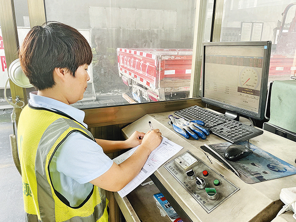 当天上午,一辆厢式货车缓缓驶入环保检测线,童健珍引导该车辆停好位置并提速,当速度达到一定标准后,她将检测管放进汽车尾气管中,再打开检测开关,整个过程,童健珍与引车员默契配合,一气呵成。“不同车型排气管位置不同,什么车辆排气管在什么位置,我看一眼就知道。”童健珍自信地说。