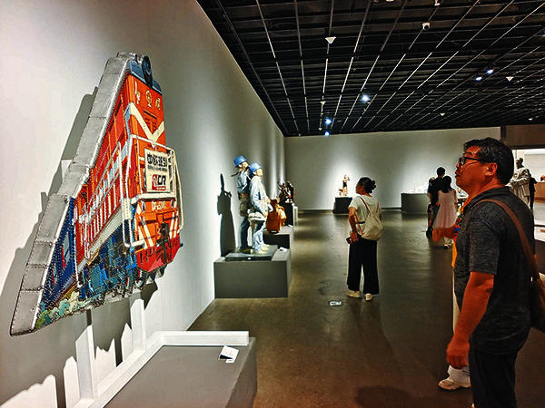 8月4日,在浙江美术馆举办的第十四届全国美术作品展览雕塑作品展上,“义乌元素”亮相。这件由雕塑家孙璐创作的名为《中国制造》的作品,用钢、铝、铆钉为原材料,以艺术化方式集中展现了“义新欧”中欧班列开行的场景。